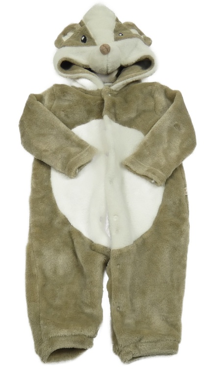 Béžovo-biela plyšová kombinéza s kapucí - jezevec