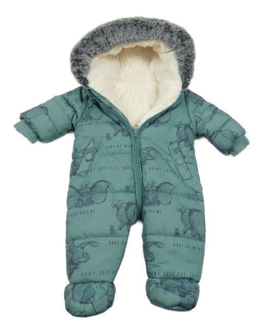Olivovošedá prešívaná šušťáková zimná kombinéza s Dumbem a kapucňou s kožešinou George