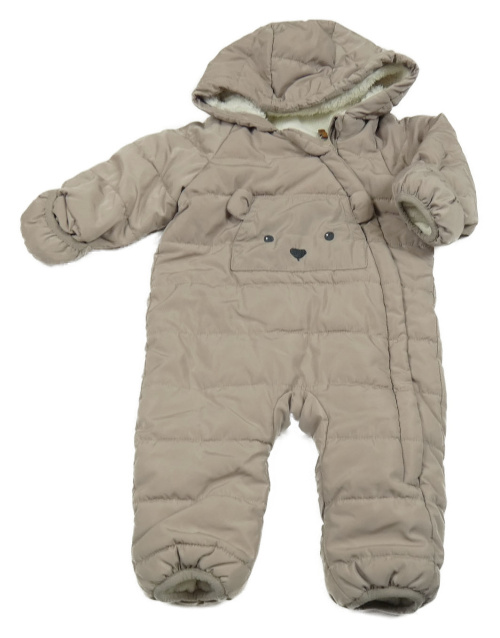 Hnedá šušťáková zimná kombinéza s medvěďom a kapucňou H&M