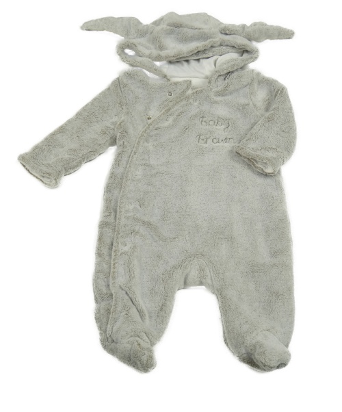Béžová chlpatá podšitá kombinéza s kapucí - zajíc
