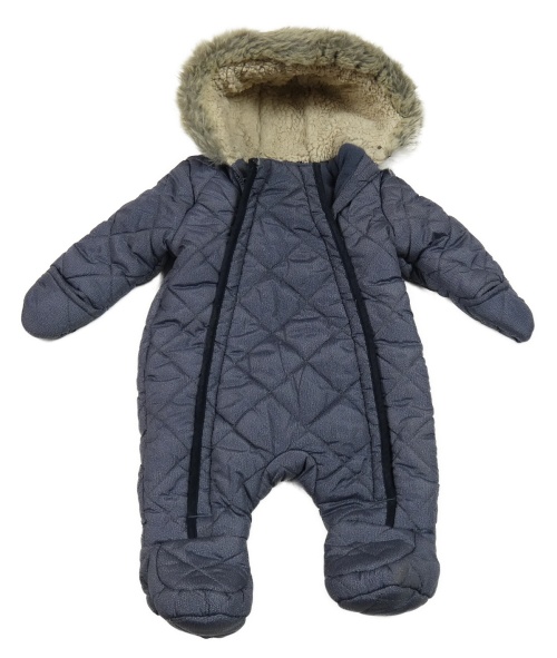 Tmavomodrá šušťáková prešívaná zimná kombinéza s kapucňou s kožešinou Primark