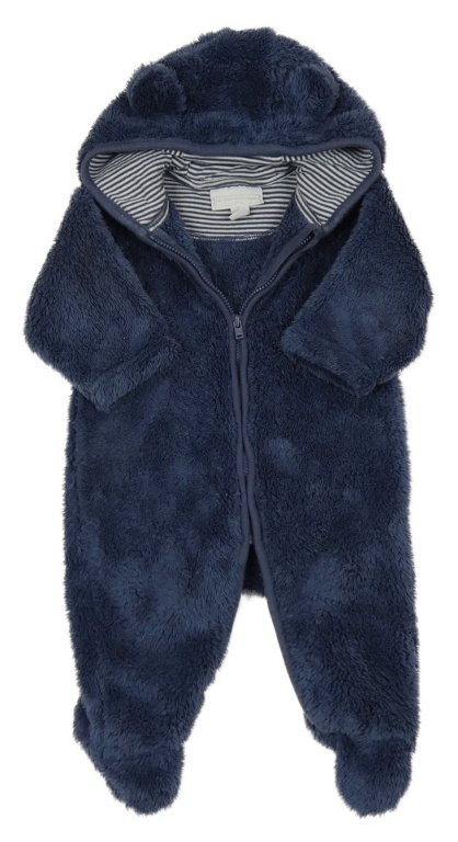 Tmavomodrá chlpatá kombinéza s kapucňou