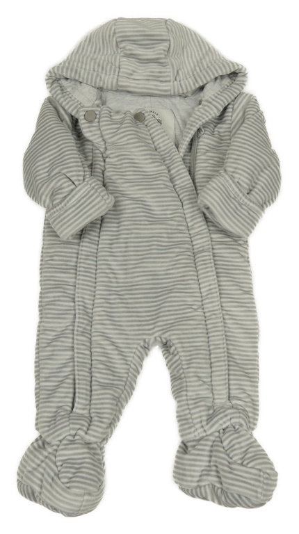 Sivo-biela pruhovaná plyšová zateplená kombinéza s kapucňou M&S