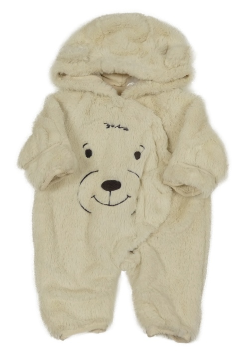 Smotanová chlpatá podšitá kombinéza s medvěďom a kapucňou Pep&Co