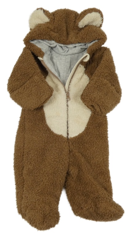 Hnedo-smotanová huňatá zateplená kombinéza s kapucí - medvěď M&S
