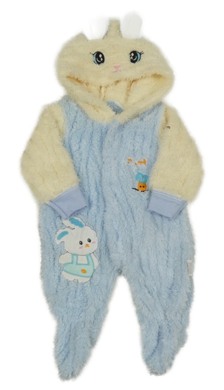 Světlemodro-smotanová chlpatá kombinéza s kapucí - zajíc