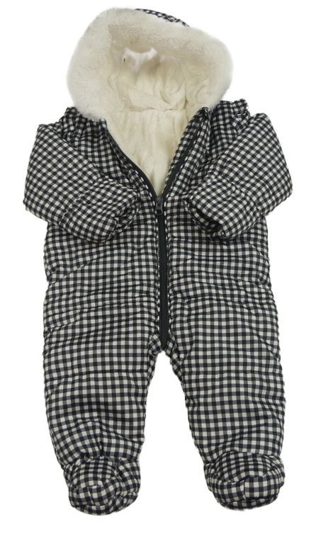 Čierno-biela kockovaná šušťáková zimná kombinéza s kapucňou George