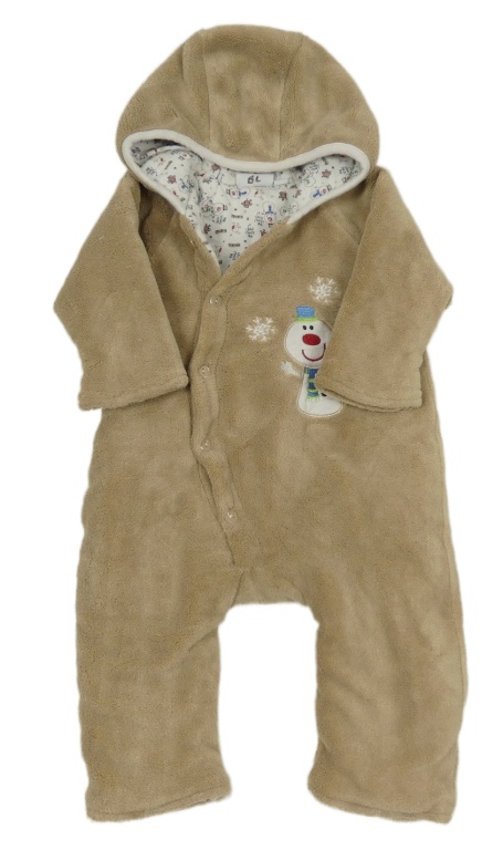 Béžová chlpatá zateplená kombinéza so sněhulákem a kapucňou