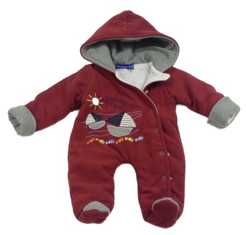 Vínová fleecová podšitá kombinéza s loďkami a kapucňou