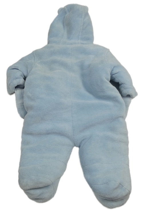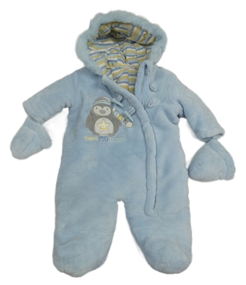 Modrá plyšová zateplená kombinéza s tučňákem a kapucí + rukavice