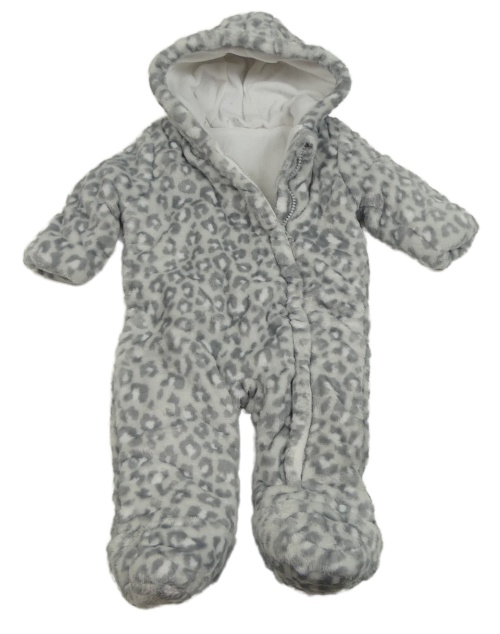 Sivo-biela vzorovaná chlpatá zateplená kombinéza s kapucí F&F