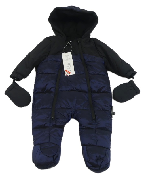 Nové - Tmavomodro-čierna šušťáková zimná kombinéza s kapucí + rukavice F&F