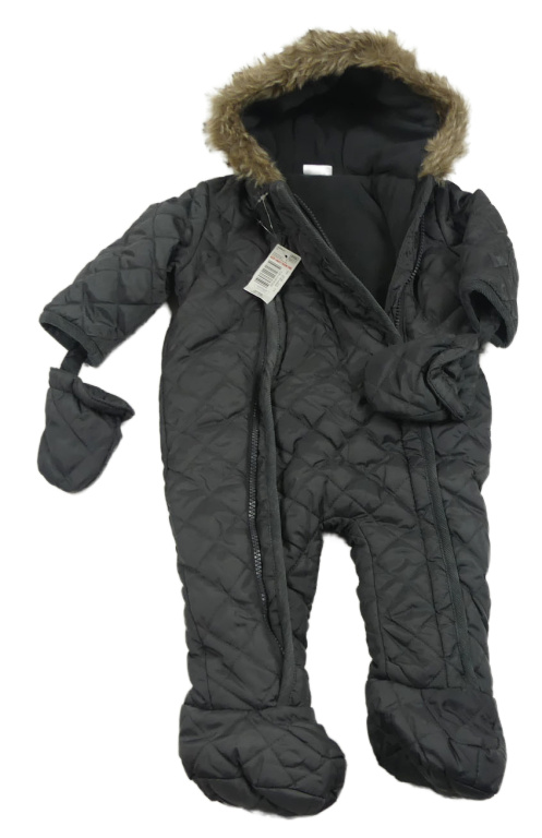 Nové - Tmavosivá prešívaná šušťáková zimná kombinéza s kapucí + rukavice F&F
