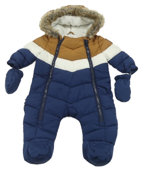 Medovo-bielo-tmavomodrá šušťáková zimná kombinéza s kapucňou F&F
