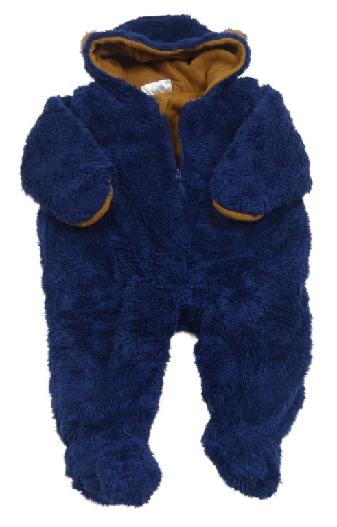 Tmavomodrá chlpatá zateplená kombinéza s kapucňou Ergee