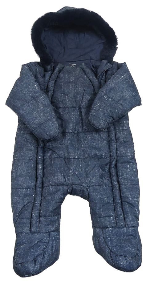 Tmavomodrá melírovaná šušťáková zimná kombinéza s kapucňou Primark