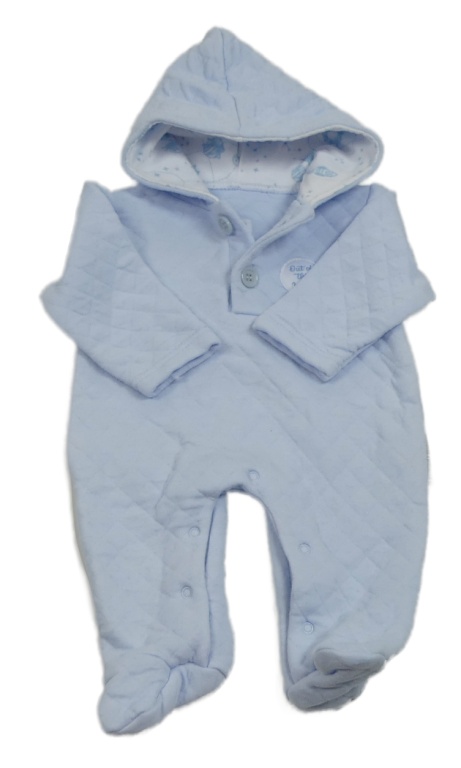 Svetlomodrá prešívaná tepláková kombinéza s nášivkou a kapucňou