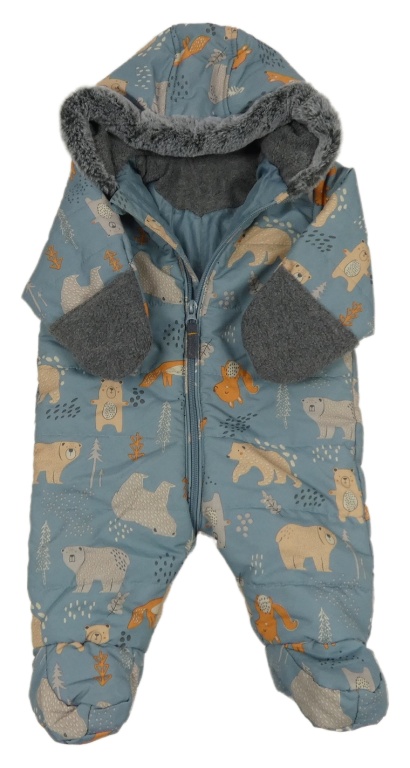 Šedomodrá šušťáková zimná kombinéza so zvířaty a kapucňou Nutmeg