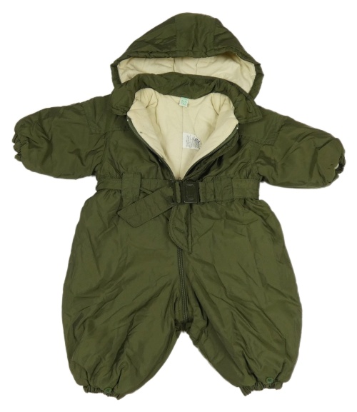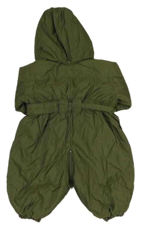 Khaki šušťáková zimná kombinéza s opaskom a kapucňou