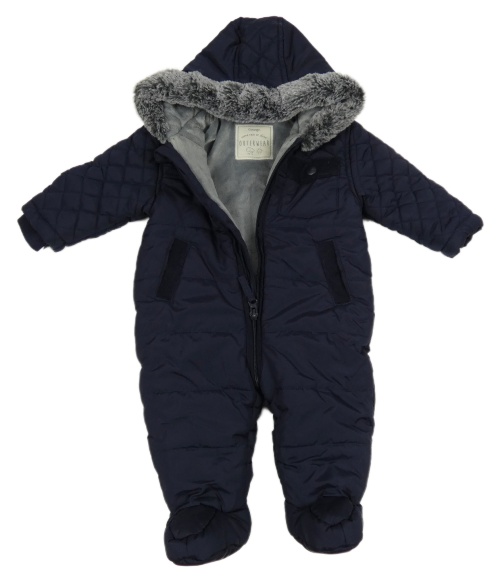 Tmavomodrá šušťáková prešívaná zimná kombinéza s kapucňou George