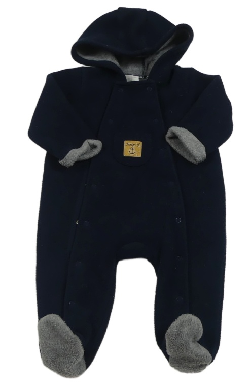 Tmavomodrá fleecová tepláková kombinéza s nášivkou a kapucňou Jasper Conran