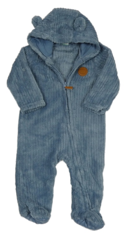Modrá chlpatá rebrovaná kombinéza s kapucí - medvěď