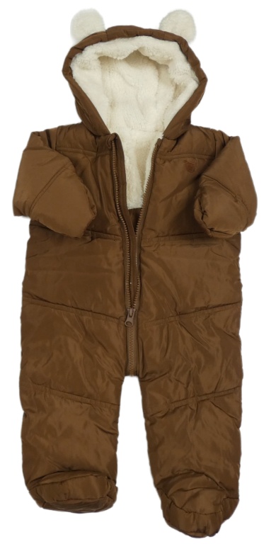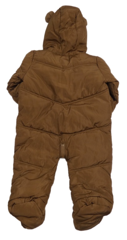 Hnedá prešívaná šušťáková zimná kombinéza s medvedíkom a kapucňou s uškami Matalan