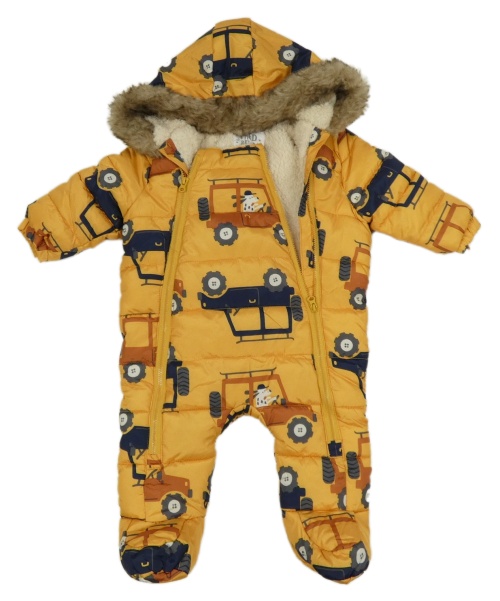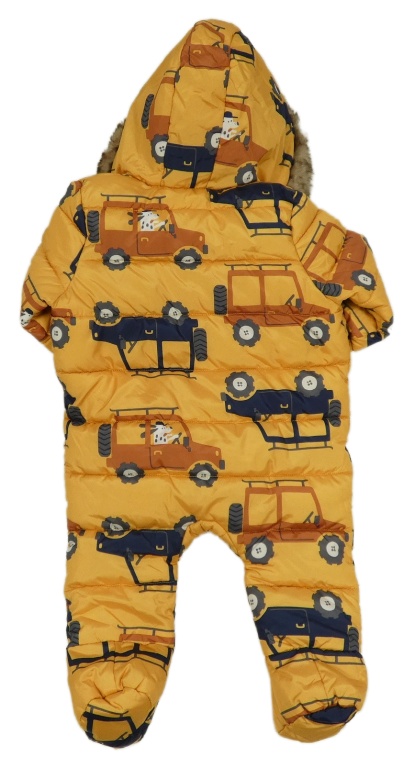 Žltá šušťáková zimná kombinéza s autami a kapucňou F&F