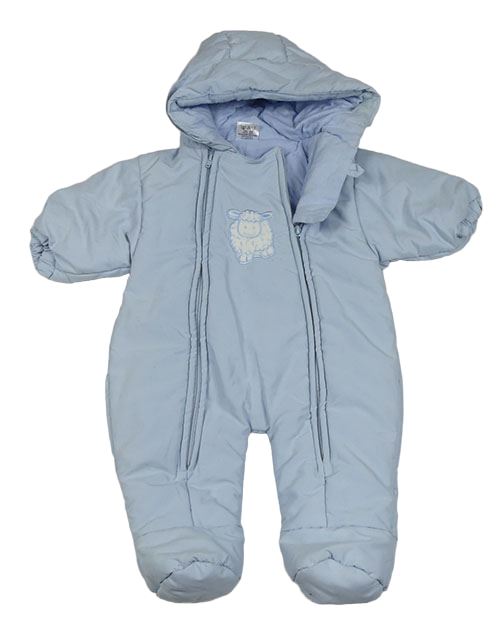 Svetlomodrá šušťáková zimná kombinéza s ovečkou a kapucňou
