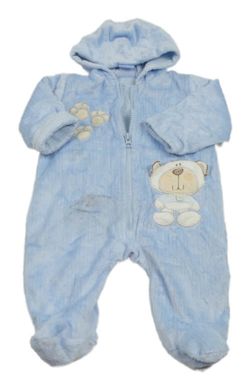 Svetlomodrá chlpatá podšitá kombinéza s medvěďom a kapucňou