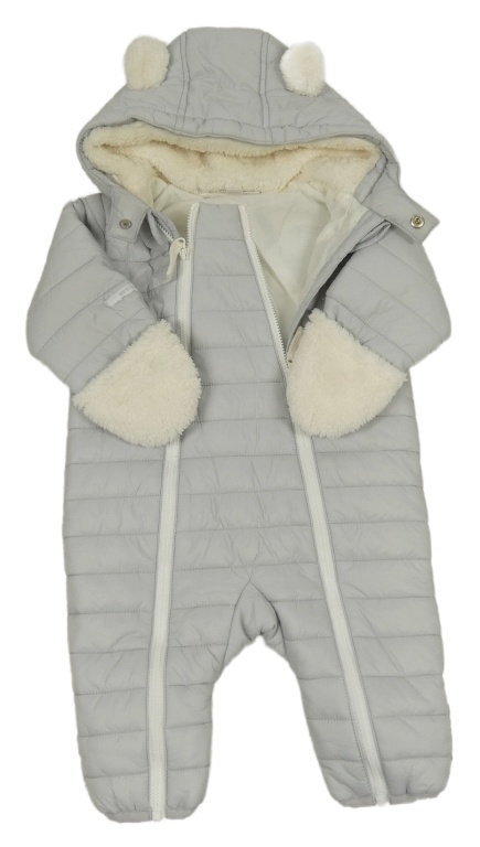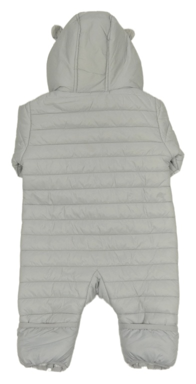 Svetlosivá šušťáková prešívaná zimná kombinéza s kapucňou