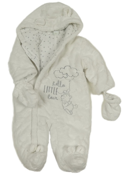 Biela chlpatá zateplená kombinéza s Púem a kapucí + rukavice Disney