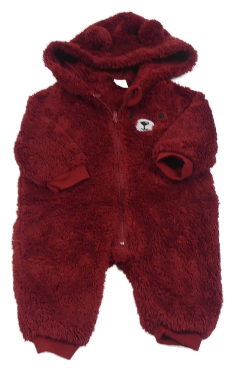 Vínová chlpatá kombinéza s medvěďom a kapucňou