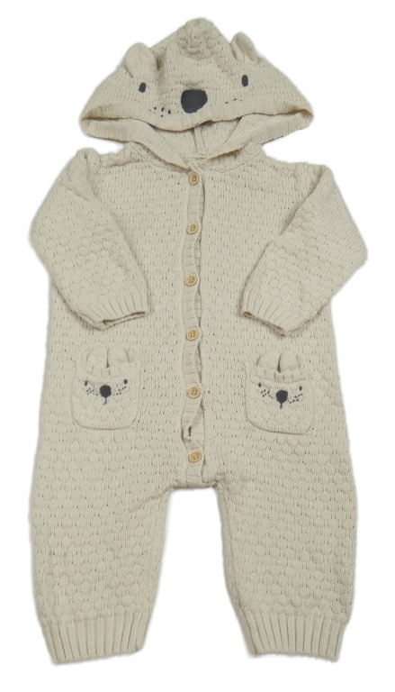 Smotanová pletená kombinéza s medveďmi a kapucňou George
