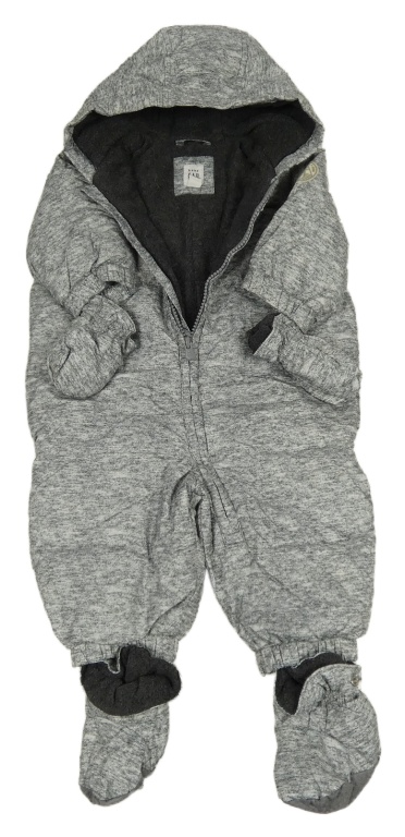 • Sivo-biela melírovaná prešívaná šušťáková zimná kombinéza s nášivkou a kapucí + rukavice a cápačky GAP