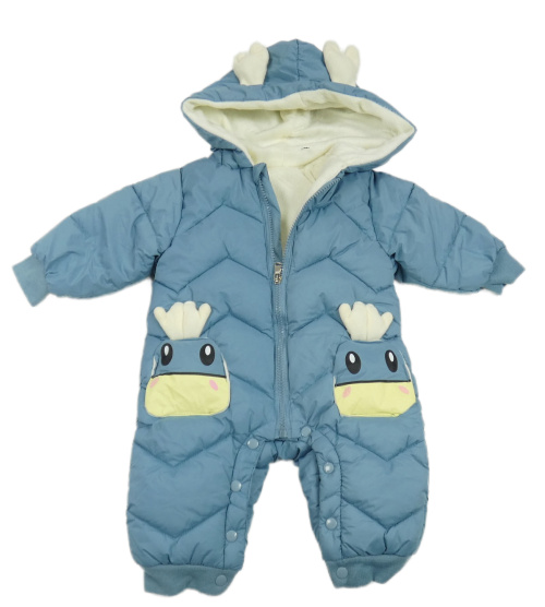 Modrá prešívaná šušťáková zimná kombinéza s dinosaurami a kapucňou