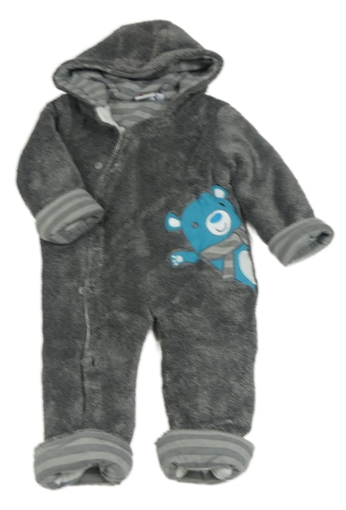 Tmavosivá melírovaná plyšová zateplená kombinéza s medvedíkom a kapucňou Bubble Gum
