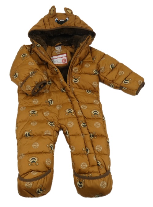 Medová šušťáková futbalová zimná kombinéza s medveďmi a kapucí - FC Bayern Mnichov