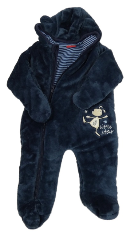 Tmavomodrá plyšová zateplená kombinéza s psíkom a kapucňou s uškami SALT AND PEPPER