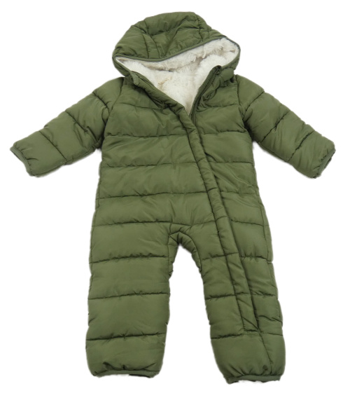 Khaki šušťáková prešívaná zimná kombinéza s kapucňou