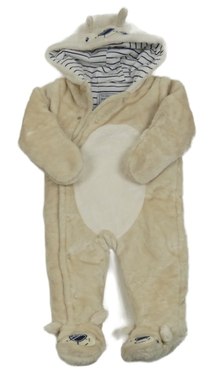 Smetanovo-biela plyšová zateplená kombinéza s kapucí - medvěď M&Co.