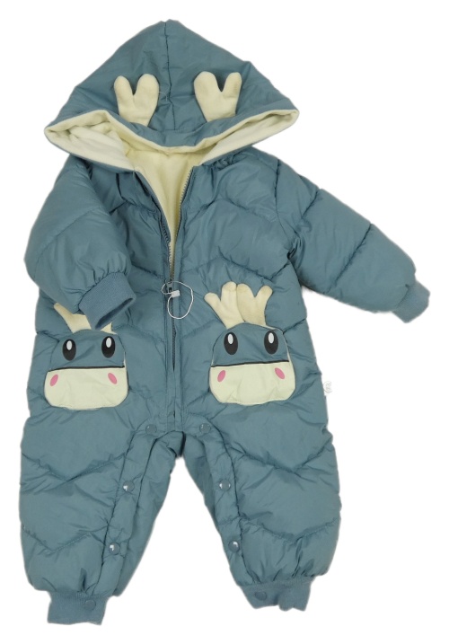 Modrošedá šušťáková zimná kombinéza so sobmi a kapucňou
