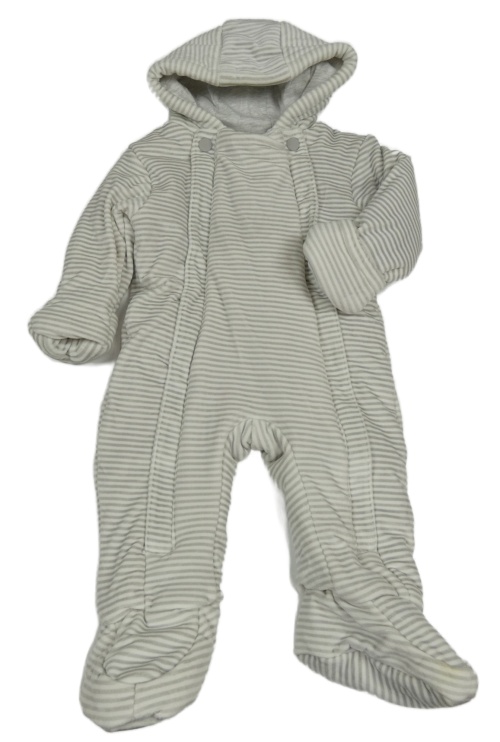 Sivo-biela pruhovaná plyšová zateplená kombinéza s kapucňou M&S
