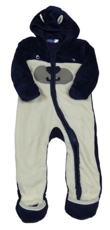 Tmavomodro-biela chlpatá podšitá kombinéza s medvedíkom a kapucňou Lupilu