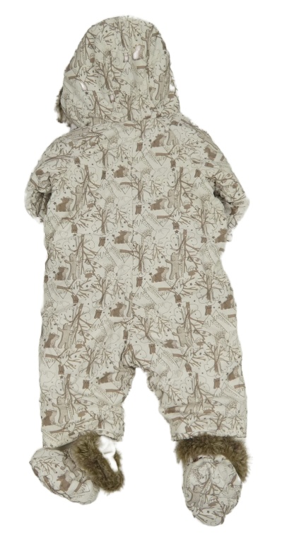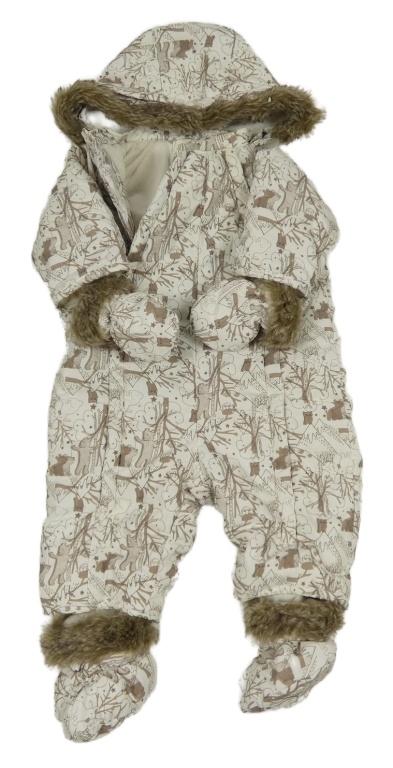 Smetanovo-hnedá šušťáková zimná kombinéza s medvídky+ rukavice a cápačky H&M