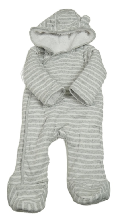 Sivo-biela pruhovaná zateplená kombinéza s kapucňou F&F