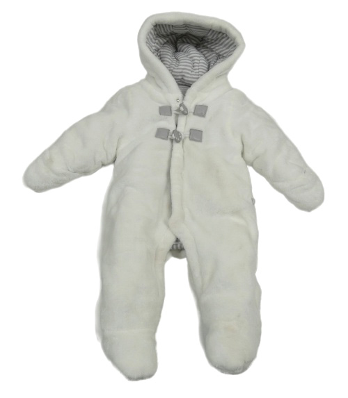 Biela chlpatá zateplená kombinéza s kapucňou Obaibi