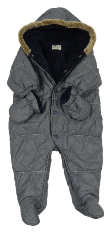 Tmavomodrá melírovaná plátenná zimná kombinéza s kapucí+ rukavice Next