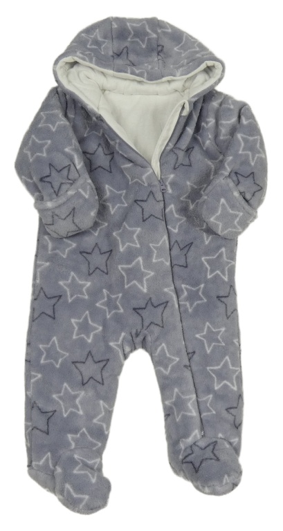 Šedofialová plyšová zateplená kombinéza s hviezdami a kapucňou Dunnes