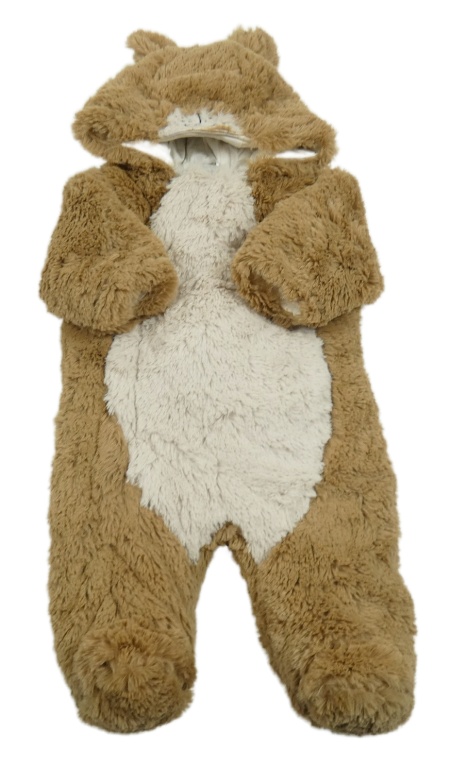 Hnedo-biela kožušinová zateplená kombinéza s kapucí - medvěď